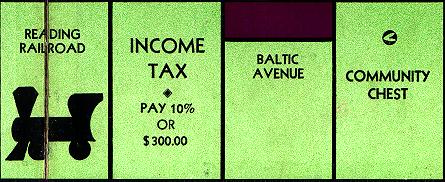 The first two have no property prices on the board and Income Tax is 10% or $300. The third, fourth, and seventh ones I have not seen but were described to me. Please email if your board does not match these. Also, please contact me if you know a way to date these boards by publication month and year.
