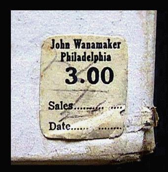 There are no numbers in the corners of the money, only in the center. There are no tokens as the instructions say to provide each player with their own token. There are no values showing on the squares on the board. And the original Wannamaker price tag is still on the box.